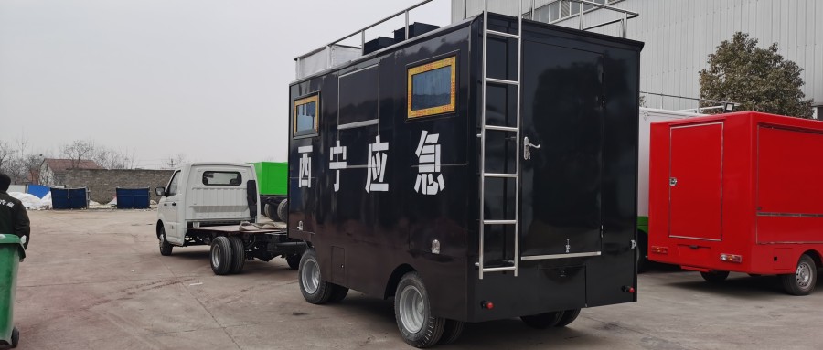 加溫裝置3個(gè),空調(暖風(fēng)),電動(dòng)抽水泵,室內照明,左右上掀門(mén)1000m*600mm,45車(chē)身人防顏色及人防標志。車(chē)身兩側各四個(gè)推拉窗戶(hù)800mm*700mm。不銹鋼上車(chē)踏板。