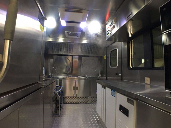 依維柯四驅底盤(pán)改裝的炊事車(chē),車(chē)廂經(jīng)過(guò)特殊材料制作而成。廂體外蒙材料可以采用玻璃鋼板或者彩鋼板,內飾材料采用不銹鋼板或者玻璃鋼板或者彩鋼板,廂體兩側采用上翻結構??梢栽O置單獨的隔離艙用于放置燃氣灶和儲物柜。車(chē)廂內部可以根據實(shí)際使用情況配備:廚房專(zhuān)用燃氣灶,水池,冰箱,電磁爐,開(kāi)水器,水箱等,也可以根據客戶(hù)要求配置,采用外接電源供電。