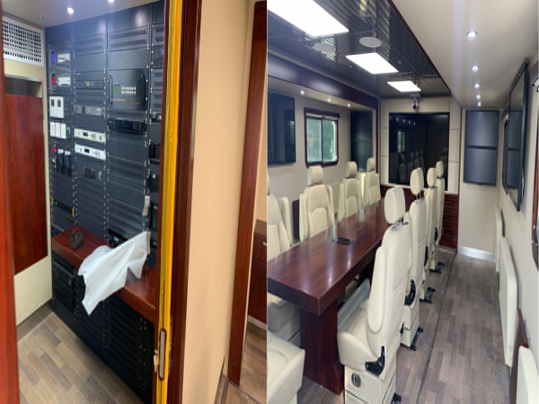 其它 該車(chē)頂部封閉,不可開(kāi)啟;主要專(zhuān)用裝置及功能:高清傳輸系統終端、視頻會(huì )議終端、集中控制系統、無(wú)線(xiàn)對講系統等,用于現場(chǎng)監控,應急指揮通信等.側防護為裙邊結構,后