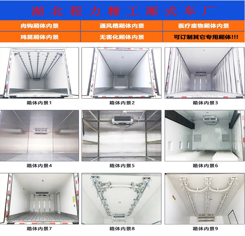 廂體配置:采用我公司液壓吸附一體成型生產(chǎn)線(xiàn)制造,保溫性能達到****標準,廂體采用全密封處理, 廂體外面料采用**新款納米玻璃鋼(不吸光、隔熱性好、硬度強、抗氧化),廂體厚度為8cm,內襯骨架為防銹處理武鋼優(yōu)質(zhì)輕鋼型材,保溫材料為無(wú)空隙填充聚氨酯發(fā)泡,廂體底部為鋁合金花紋板或選平面納米玻璃鋼,廂體采用鍍鋅不銹鋼包角,加厚型鋁合金包邊,后門(mén)框為不銹鋼,加厚型不銹鋼后門(mén)合頁(yè)及鎖件,廂體內部采用LED照明燈及廂體示寬燈。